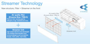 Protect your home environment with Daikin’s patented Streamer Technology. This advanced feature generates a plasma electric discharge with an oxidative decomposition power over 1,000 times more powerful than ordinary electric plasma. This power is used to actively attack and decompose harmful elements captured by the filter.